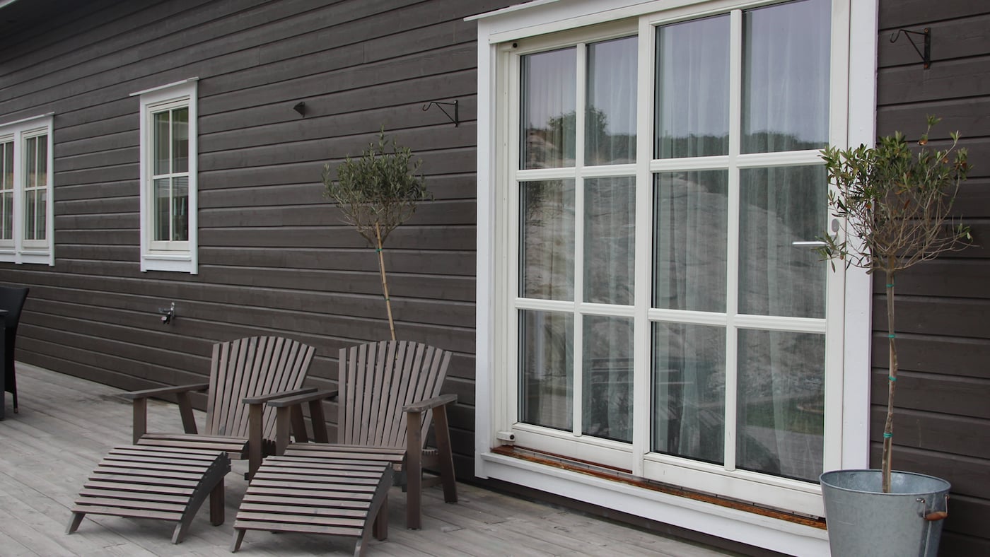 Fönster och dörrar är viktiga detaljer vid färgsättning av ett hus. Vackert utformade och placerade fönster och dörrar är smycken på en fasad och kan med fördel framhävas med hjälp av tydliga färgkontraster.