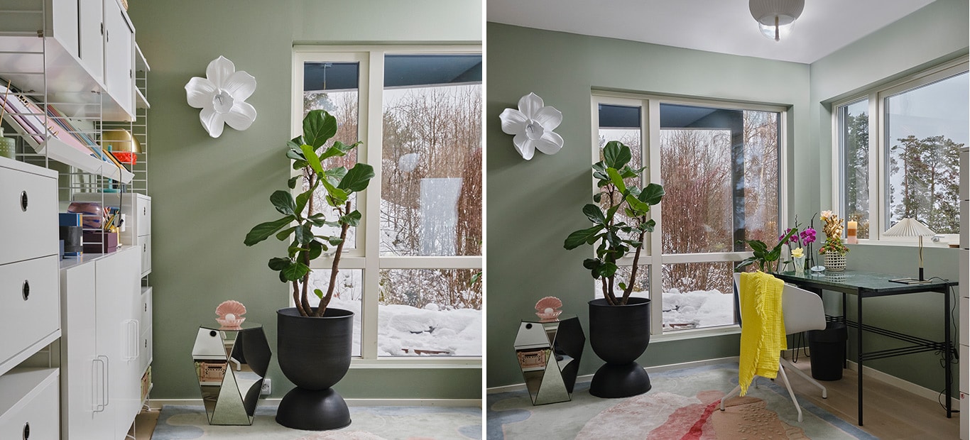 För Jannicke är ingen arbetsdag den andre sig lik utan hennes arbetsveckor är en skön mix av alla möjliga uppdrag. Allt från homestylingar, diverse inredningsprojekt, styling- och fotouppdrag samt färgsättningar hemma hos kunder.