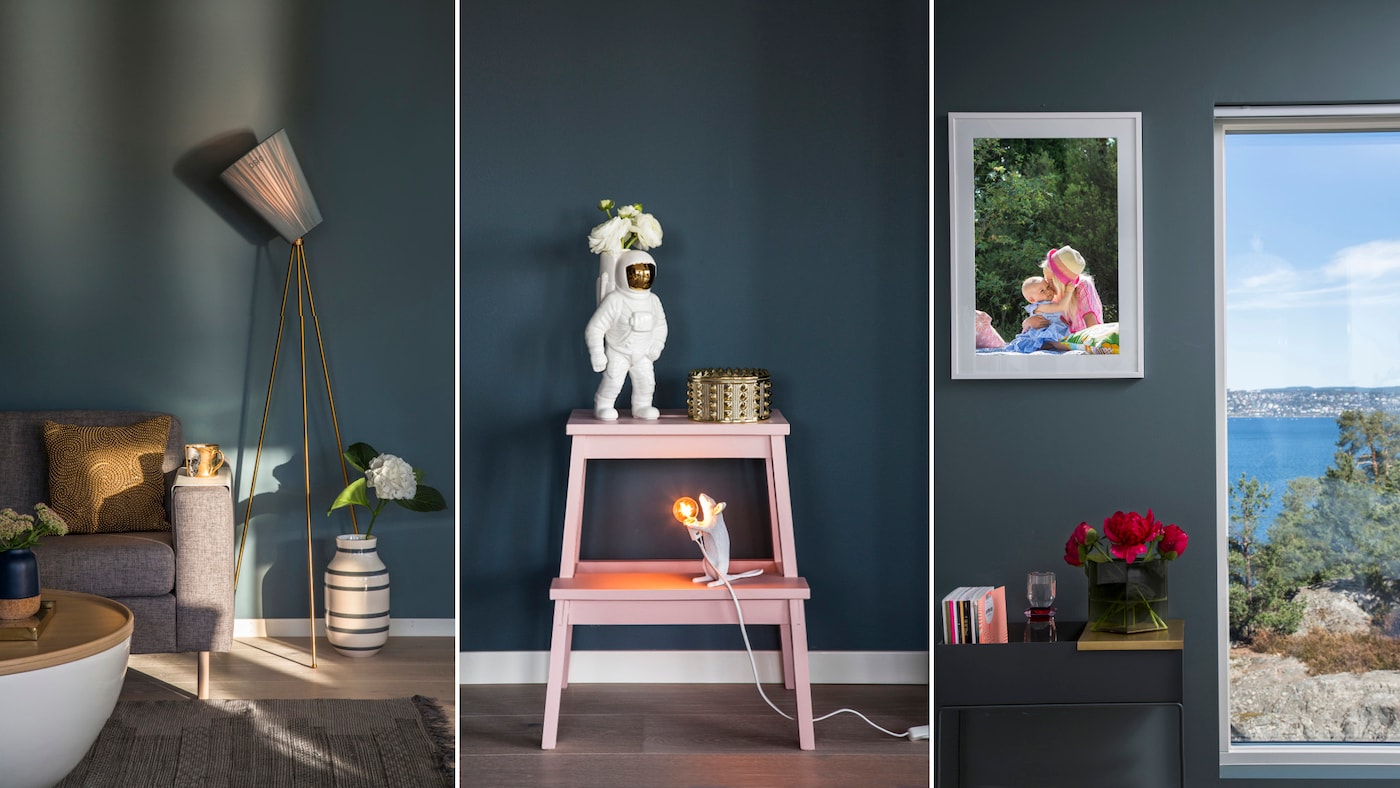 "Jag älskar rosa! Det är en kulör som är intspirerad av det operfekta i naturen - alltså en kulör som är något helt annat men passar ihop med de elementen. Jag valde kulörerna AimForHappiness Blue och AimForHappiness Balance för att jag hade en stark önskan om att ta in naturen i vårt hem.