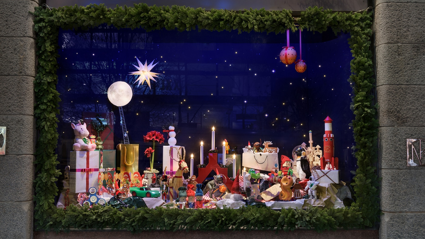 I årets skyltfönster kommer temat Julens Magiska Universum till liv. Här får vi möta Nova, en liten flicka som drömmer om universum och i sin fantasi ger sig ut på en resa i rymden.