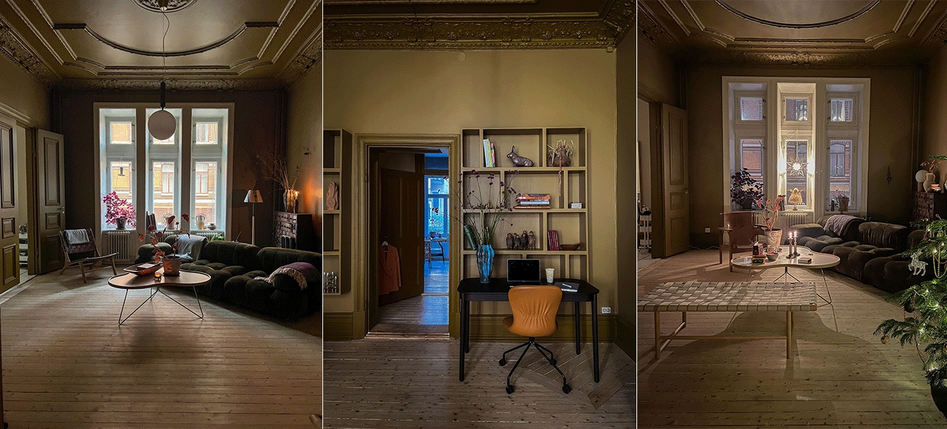 Sofies lägenhet är en så kallad typisk sekelskiftets lägenhet, högt i tak och stuckaturer.