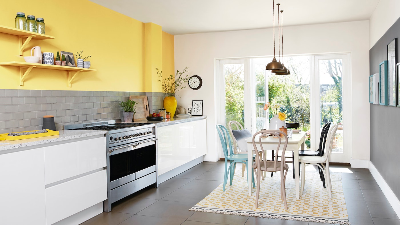 En öppen förvaring i köket kan skapa ett luftigt och inbjudande intryck. När man målar sina hyllor i samma kulör som väggen så skapar man enhetlighet i köket.
