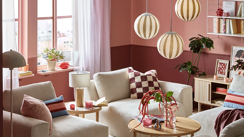 Skapa en lugn men färgglad balans i hemmet med mjuka varma toner.