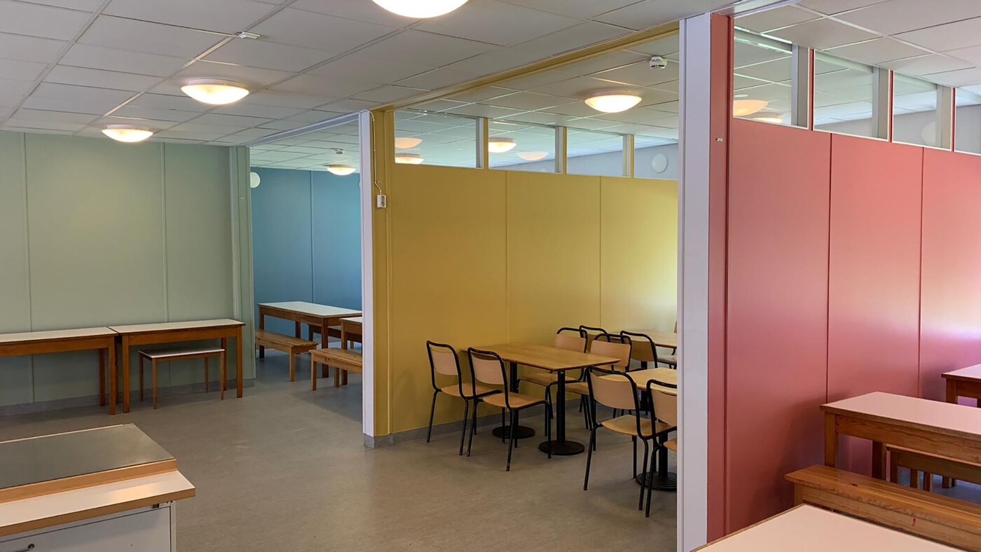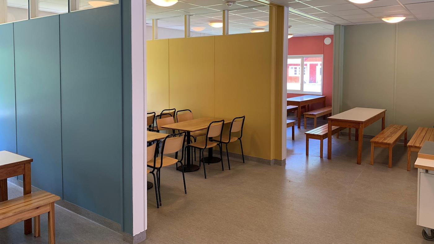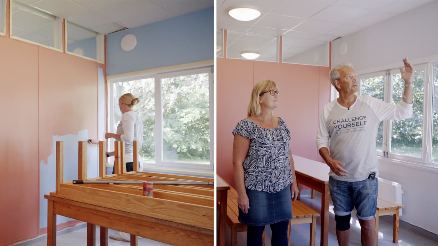 Det är många rum och ytor här på kollot som är i behov av en uppfräschning, men vi kände nog allihopa att just matsalen var det rummet som vi ville göra extra trevligt nu i första hand för barnen, säger Mikael J:son Lindhe, Informationschef på Nordsjö.