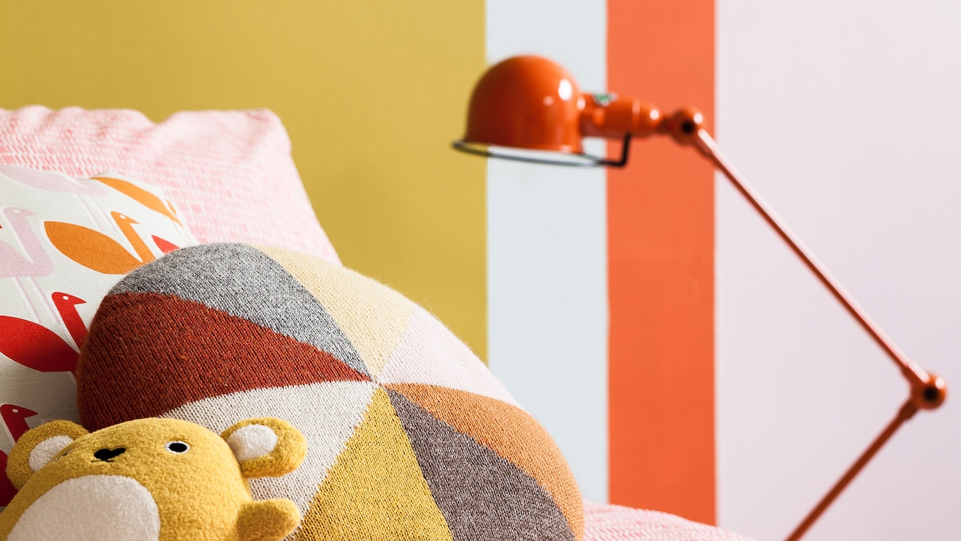 Försök att begränsa din kulörpalett till max tre starka kulörer för en sammanhållande känsla. Upprepa dessa kulörer i hemtextilierna – vi älskar hur sängkläderna kompletterar kulörerna på väggarna.