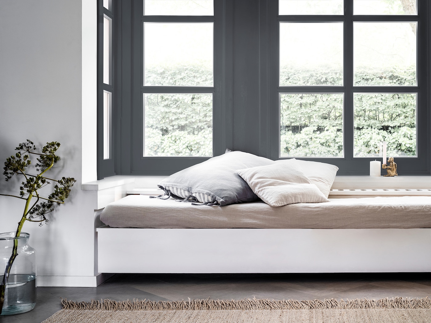 Inred gärna ditt burspråk med en dämpad belysning och mjuka textilier i en harmonisk färgskala för att inte ta bort fokus från den vackra kulören (och utsikten såklart).