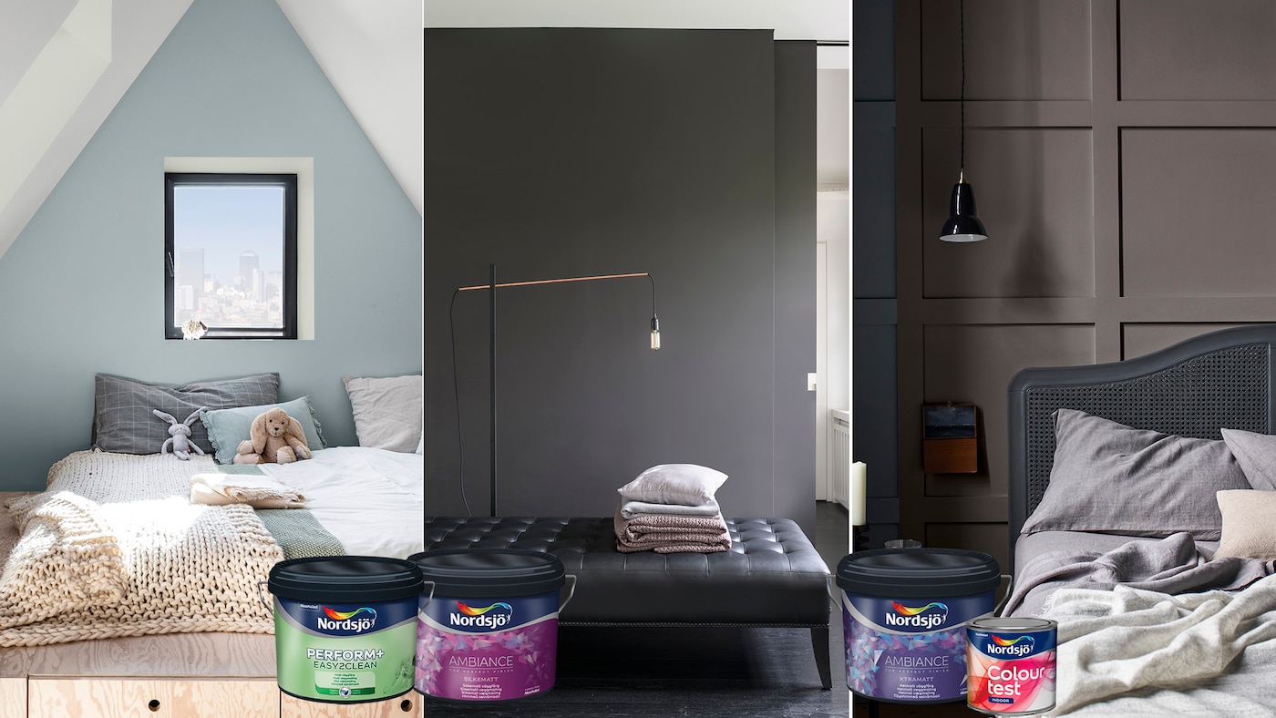 Den mörka looken är såklart även trendigt i sovrummet. Här kan vackra och karaktärsfulla kulörer som Deep Melun och Nordsjö cobalt night skapa ett lugn och en djup karaktär i ditt rum. Sovrummets fondvägg här nedan är målad med den rödbrun-grå Deep Melun. En vacker karaktärsfull kulör som ibland kan uppfattas som lite lila.